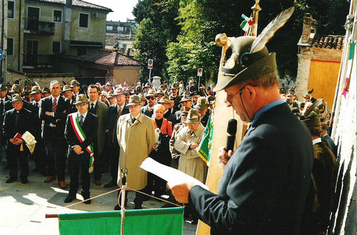 A ricordarlo, alla cerimonia di domenica 17 ottobre c’erano tutti. Oltre ai parenti ed agli alpini con i gagliardetti dei vari Gruppi della sezione, in testa il Presidente ed il Vessillo, c’erano le Autorità della Pubblica Amministrazione locale, con il Sindaco alpino Floriano Zambon in testa a felicitarsi per questa scelta del nostro Gruppo. C’era il Gonfalone del Comune di Conegliano. C’erano i reduci che, in un abbraccio di reciproco sostegno, hanno assistito compiti e commossi, come lo eravamo tutti, all’intera manifestazione, dall’alzabandiera al monumento ai Caduti, alla deposizione della corona, alla messa in Duomo, alla sfilata per il centro e per le strade che portano alla sede del nostro Gruppo, fino alla benedizione di Mons. Domenico, nostro cappellano.