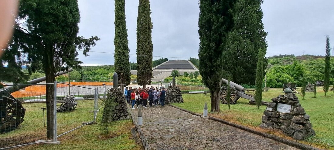 “Locus terribilis iste” è scritto sull'altare della chiesetta sommitale, a ricordare quella pietraia assolata del Carso che dal “maggio radioso” 1915 fino all'ottobre 1917 con la disfatta di Caporetto, vide le gesta dei soldati della 3a Armata, l'Invitta, del duca d'Aosta che poi volle essere sepolto proprio là a Redipuglia accanto ai suoi centomila Caduti, di cui quasi due terzi rimasti senza nome e “noti solo a Dio”.