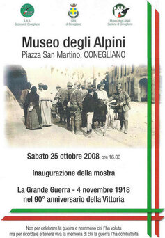Il museo, dal canto suo, ha redatto come di consueto un fascicolo in cui sono riassunti nella loro concatenazione logica e temporale, gli eventi storici attinenti alla mostra, per consentire l’inquadramento generale del processo in esame, esplicitato attraverso i reperti esposti. Il museo degli alpini di Conegliano, diretta emanazione dell’omonima sezione, costituisce senza dubbio alcuno espressione di un “serbatoio memoriale” a cui attingere per far rivivere gli eventi del passato ed a cui ispirarsi per interrogarsi sul presente a premessa delle aspettative future.