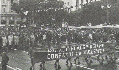 La Sezione ha fatto la sua bella figura e lusinghieri sono stati gli applausi a noi indirizzati, Ha fatto grande effetto il nuovo striscione - eseguito dal molto bravo Steno Bellotto - che dice «Noi alpini respingiamo compatti la violenza». Un ringraziamento a tutti i componenti della Banda per la loro costanza e tenacia nell’eseguire gli inni durante tutta la sfilata, sotto la valida guida di Giovanni Zornio.