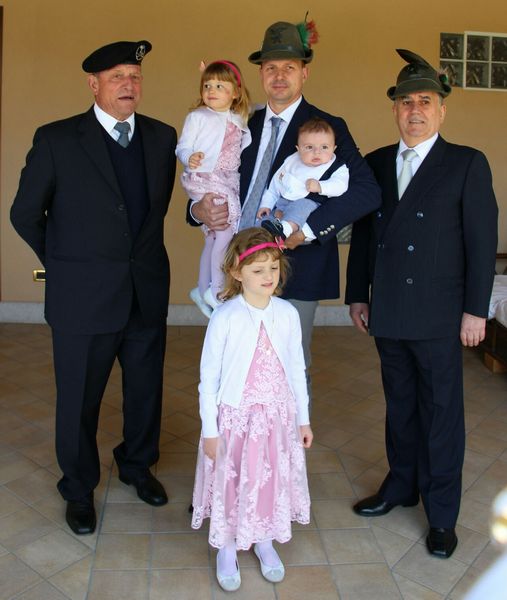 Il papà Diego BOZZETTO del Gruppo Alpini di Santa Lucia di Piave insieme ai nonni Luigi Silvestrin del Gruppo Alpini Parè e Virgilio Bozzetto Presidente del Gruppo artiglieri di Santa Lucia di Piave, presenta con orgoglio i figli Anna, Martina e Davide.