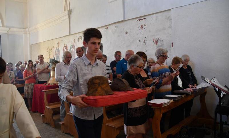 ELMETTI ITALIANO ED AUSTROUNGARICO PORTATI ALL'ALTARE COME SEGNO DI PACE A 100 ANNI DALLA GRANDE GUERRA
