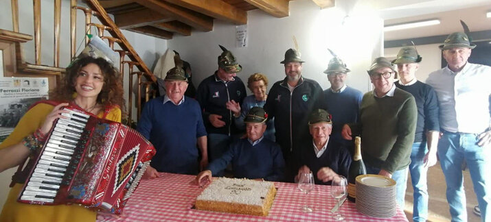 Renzo Marsura, classe 1935, socio fondatore del Gruppo, ha festeggiato i suoi 90 anni con i famigliari. Servizio militare a Monguelfo (BZ) nel 6° Reggimento Alpini. Con lui nella foto (a destra) il fratello Albino, classe 1942, alpino del 6° artiglieria, gruppo Lanzo a Belluno.