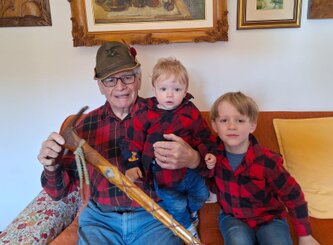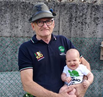 Il socio Tonetto Fiorenzo anni 93, Brigata Alpina Julia Genio Pionieri Udine, presenta orgoglioso i pronipoti Leonardo e Giovanni Zanco