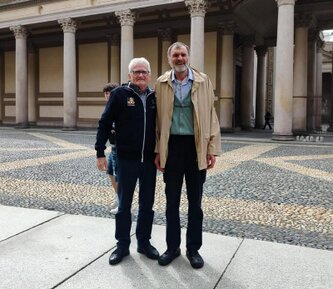 Louis Dal Cin si ritrova dopo quarant'anni con Silvio Salussolia in occasione dell'Adunata a Biella, naja presso distretto militare di Viterbo nel 1974.