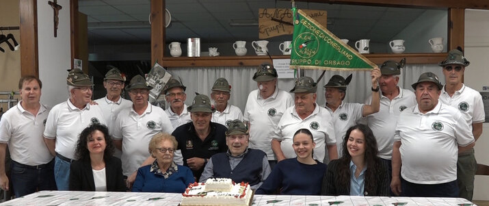 L'alpino Perin Giovanni, attorniato dai propri familiari, festeggia il prestigioso traguardo dei 95 anni. Congratulazioni da parte del Gruppo Alpini