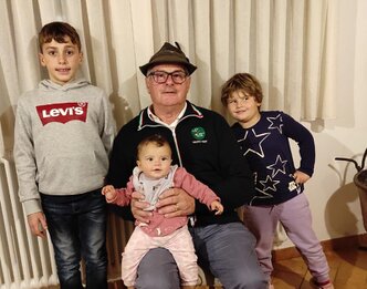 Nonno Davide Tardivel con Giorgia, Matteo e la piccola Alice. Nuova linfa per il gruppo.