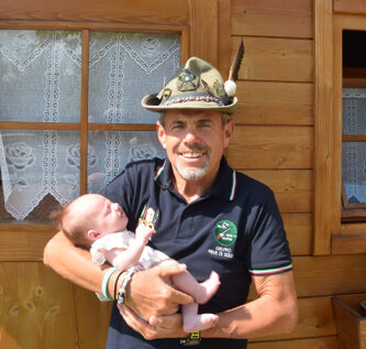 Luigi Florio Casonato, l'artigliere Alpino del 6 Reggimento Alpini, Alfiere del gruppo, presenta con orgoglio la nipotina Anna. Benvenuta alla nuova stellina alpina.