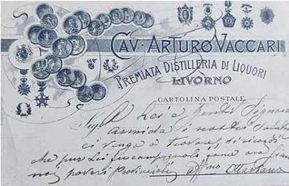 Arturo Vaccari fu, in verità, uno dei livornesi più famosi negli anni a cavallo tra l`’800 e il `900 dei due secoli scorsi. La sua distilleria era situata in via Marco Mastacchi e vantava la produzione di tre liquori che avevano ricevuto premi e riconoscimenti internazionali (tra cui la Medaglia d’oro al prestigiosissimo concorso della Esposizione Universale di Parigi del 1900) a sottolinearne qualità e originalità.
