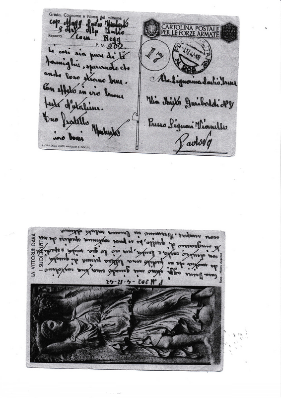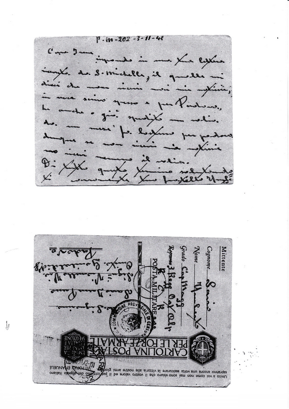 Arrivano le cartoline in casa Savio… la mia la tengo tra le mani, da prima tremo, sudo, mi agito, ho paura, Albino, Albino, Albino, corro da mio Fratello con un'accetta in