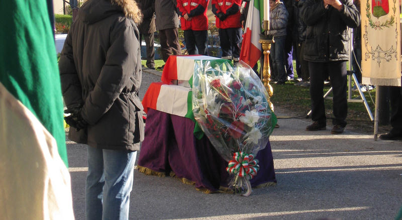 Al centro della piazzetta era stata posta l’urna avvolta dal tricolore. Sfilando poi tra due ali di folla è stata tumulata nel cimitero di Miane.